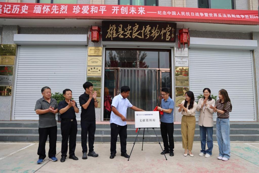 2025年9月5日上午,河北大学新闻传播学院与安良红色文化展览馆共建文献资料库挂牌仪式在雄安新区举行。双方将新闻传播实践教育与红色文化传播与传承相融合,河大师生将通过实地调研、文献整理与专业实践等方式提升业务能力,展览馆将为红色文化传播与传承提供资料支持和实践基地。