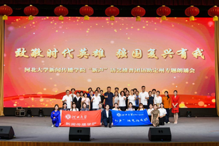 “新声”语艺推普团是由新闻传播学院统筹指导,师生携手,立足专业特色组建的一支志愿者队伍——自2019年成立以来,新闻传播学院“新声”语艺推普团聚焦基层语言发展不平衡问题,以“规范语言应用、传承文化精神、赋能地方发展”为核心,先后赴张家口市,邢台市,沧州市,雄安新区,定州市等地开展推普教学,累计覆盖基层学生1600余人,“英雄朗诵会”现场观众超3000人,形成了“趣味教学破发音难点”“校地基地建长效机制”“声情融合强思想引领”的特色模式。