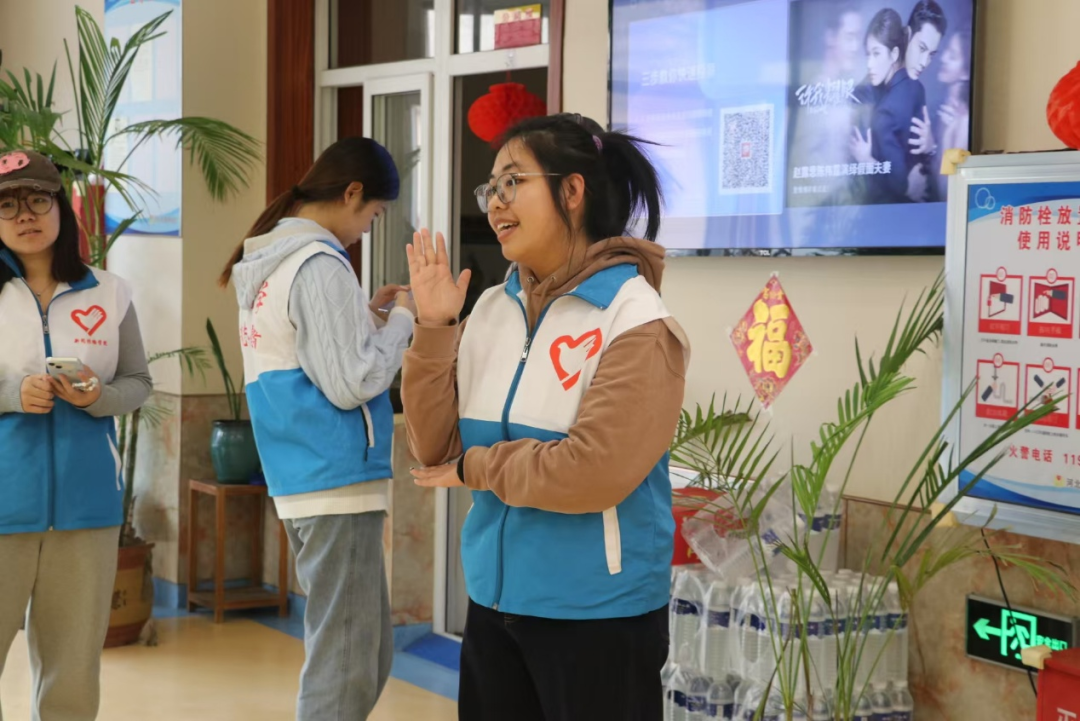 为拉近与老人间的距离,志愿者们精心准备了“反向指令”互动环节。伴随“举左手”“摸右耳”的口令,老人们认真做出相反动作,游戏简单却生动温馨。现场不时响起阵阵笑声,气氛轻松愉快,两代人之间的疏离感悄然消融。在一来一往的互动中,温暖与理解静静流淌。