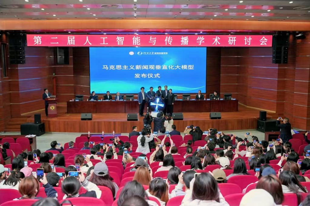 3月28日,在河北大学举办的“第二届中国人工智能与传播大会”上,由河北大学新闻传播学院与北京词元汇智科技有限公司联合开发的马克思主义新闻观垂直化大模型正式发布。