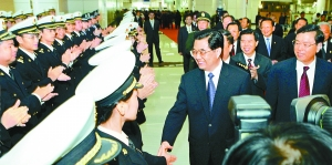 2007年7月1日,胡锦涛亲切看望口岸海关人员。陈富/摄